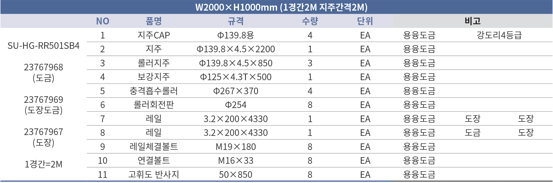 모델명 : SU-HG-RR501SB4 조달식별번호 : 23767968(도금), 23767969(도장도금), 23767967(도장)